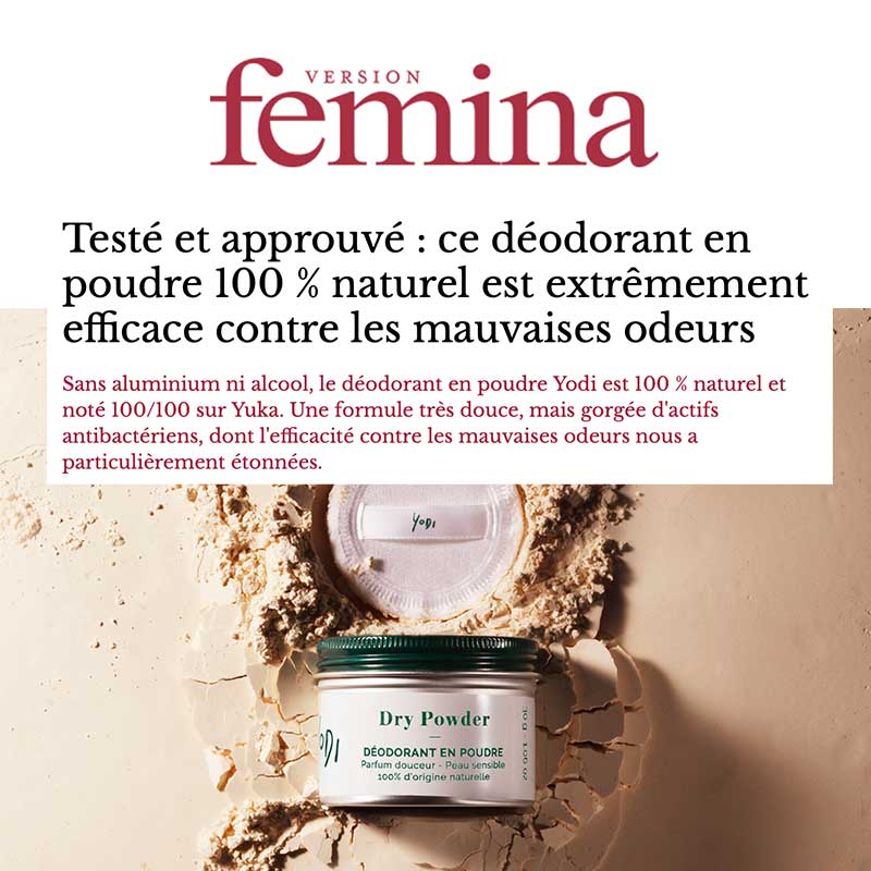 “J’ai eu la chance de tester le déodorant en amont, et la finesse de la poudre ainsi que sa douceur à l’application, sans aucune trace, m’ont séduites. Savoir qu’il est sans aluminium est très important pour moi mais cela ne doit pas être au détriment de l’efficacité : performance réussie pour YODI.”