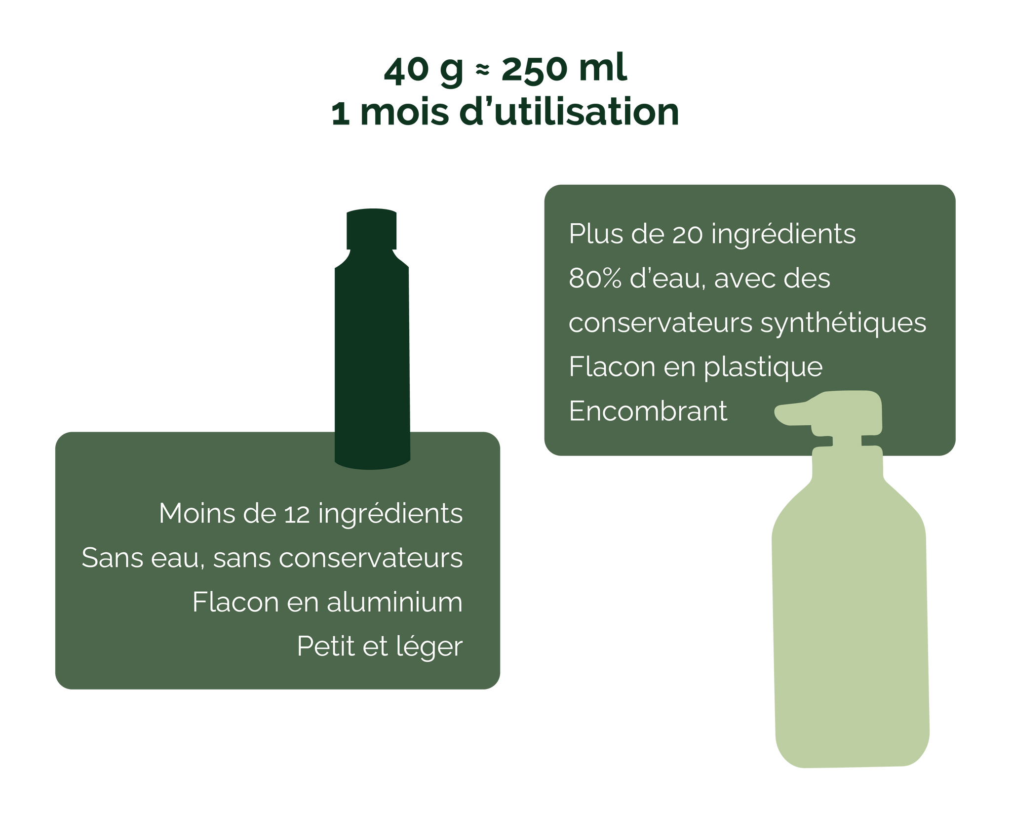 - Sans eau, sans conservateurs, sans sulfates, sans silicones